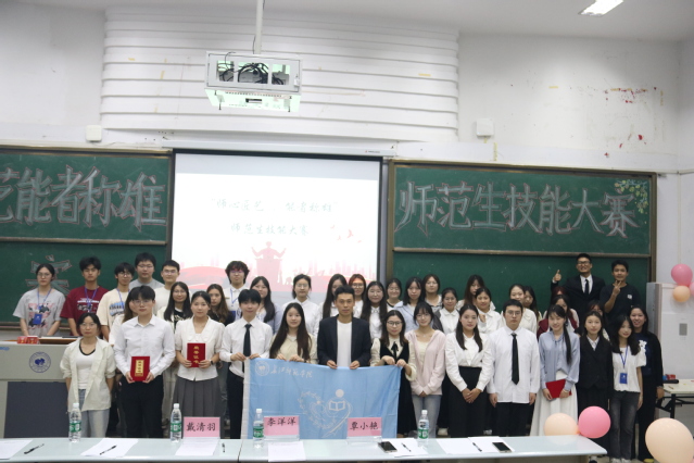颁奖环节中,经过激烈角逐,最终教师教育学院2022级小学教育1班袁雨涵和2022级小学教育3班张菁玲荣获此次师范生技能大赛决赛一等奖。