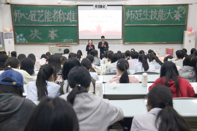 为提高师范生的专业技能水平,全面提升教学实践能力与综合素养,4月28日19时,化学化工学院于诚意楼02阶梯教室举办了以“师心匠艺,能者称雄”为主题的师范生技能大赛决赛。此次师范生技能大赛决赛由化学化工学院2023级政治辅导员覃小艳、优秀教师李洋洋、长江师范学院学生社团主席戴清羽、学院团委副书记王倩、学院团委学生组织执行主席周鑫与秦艺担任评委,长江师范学院部分学生参与。