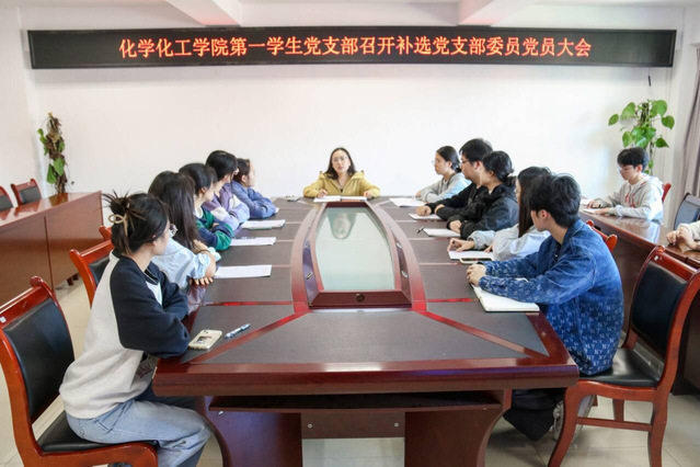 为强化支部组织力量,提升党支部凝聚力与战斗力,2025年10月23日中午12时,化学化工学院第一学生党支部于至安楼(北)607会议室召开补选支部委员党员大会。此次会议由第一学生党支部书记黎兰同志主持,支部部分党员参会。
