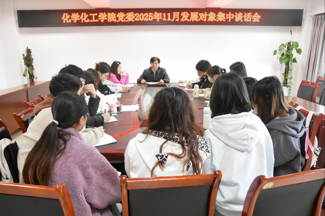 为深入贯彻习近平新时代中国特色社会主义思想,扎实落实“为党育人、为国育才”根本任务。2025年11月14日中午12时40分,化学化工学院党委于至安楼(北)607召开了11月发展对象集中谈话会。化学化工学院党委副书记曹团武出席会议,11月全体拟发展对象参与。