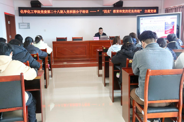 为引导入党积极分子从党的百年奋斗历程中汲取智慧力量,坚定理想信念,筑牢思想根基,化学化工学院于2025年11月20日12时30分在至安楼(北)602开展了“四史’教育和党的优良传统”为主题的党课,化学化工学院副院长谭晓平同志担任本次党课主讲人,化学化工学院全体入党积极分子参加。