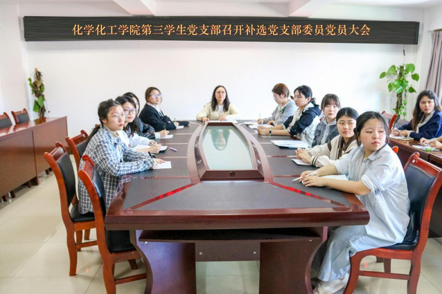 为夯实党建工作基础,充实支部工作力量,2025年10月22日13时30分,化学化工学院第三学生党支部于至安楼(北)607会议室召开补选党支部委员党员大会,此次会议由第三学生党支部书记邓中燕同志主持,第三学生党支部全体成员参会。