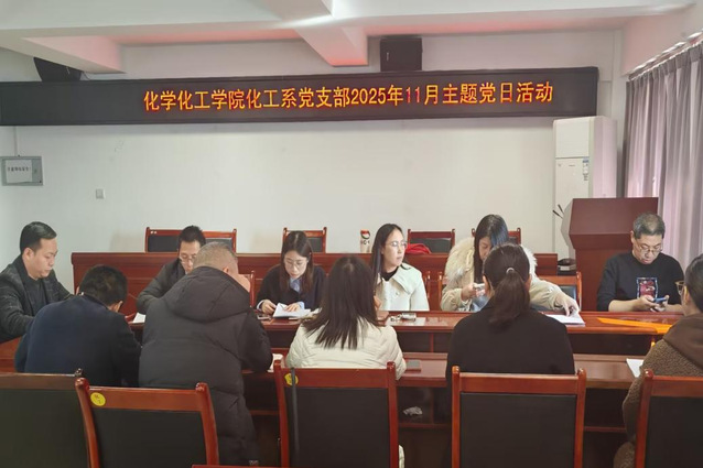 为深入学习贯彻党的二十届四中全会精神,引导支部党员深学全会精神,紧扣化工学科特色,将其融入教学科研与人才培养,强化使命担当,破解党建与业务“两张皮”,助力行业高质量发展。化工系党支部于2025年11月28日13:50在至安楼(北)602开展了以“学习贯彻党的二十届四中全会精神”为主题的党日活动。本次活动由支部党员覃小艳同志主持,化工系党支部部分成员参会。