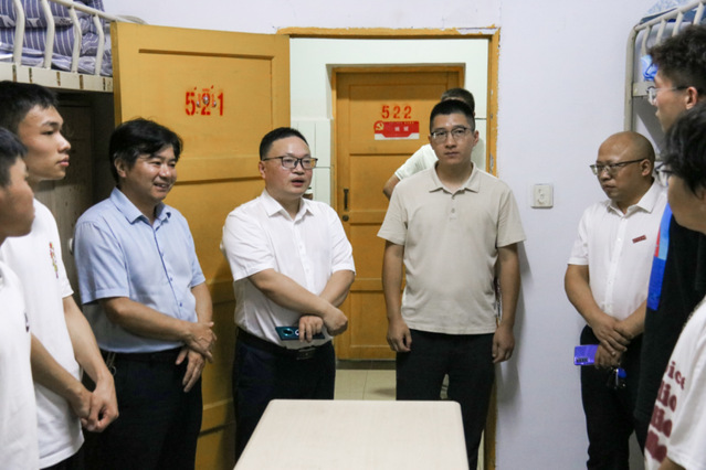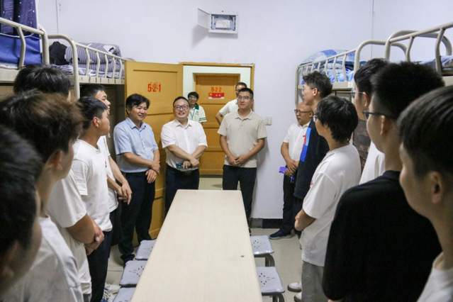 许俊强副校长一行领导走进新生宿舍,与同学们热情交流,欢迎他们加入学校大家庭,并表示若在生活、学习上遇到任何难题,随时向老师或宿管反馈,学校会全力为大家提供支持。随后,他们希望大家尽快适应校园生活,积极融入集体,同时明确考研、考编或就业等未来目标,做好未来规划。此外,领导们勉励大家既要扎实学好专业知识,也要注重自身综合能力的提升,在大学里收获成长、不负时光。最后,校院领导向新生们强调:无论大家来自哪里,学校都是大家的第二个家,有困难及时沟通,我们会和大家一起面对。