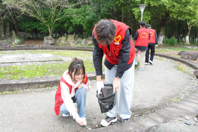 活动伊始,负责人就清扫区域、任务分工及安全事项进行了详细说明。活动过程中,志愿者们身着统一红色马甲,手持垃圾钳和垃圾袋,在鉴湖湖畔的草丛、步道缝隙等易积存垃圾的区域细致排查,重点清理隐藏在草丛深处和路面缝隙中的烟头、纸屑、塑料包装等杂物。大家分工明确,互相配合,在秋日阳光下,形成一道亮丽的红色风景线。活动结束后,参与活动的志愿者有感而发:“通过亲手清理草丛和路边的垃圾,我更加体会到维护校园环境的重要性。虽然辛苦,但看到清理后整洁的湖畔景观,感到非常欣慰。”