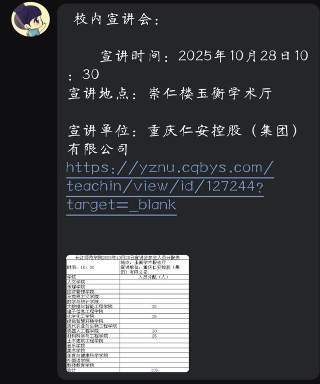 此次重庆仁安控股有限公司宣讲会的成功举办,有效搭建了企业与毕业生的双向沟通平台,既帮助企业精准对接优质人才,也让学生深入了解了行业与岗位信息。化学化工学院后续将继续整合企业资源,推出更多专场宣讲会活动,助力学生高质量就业。