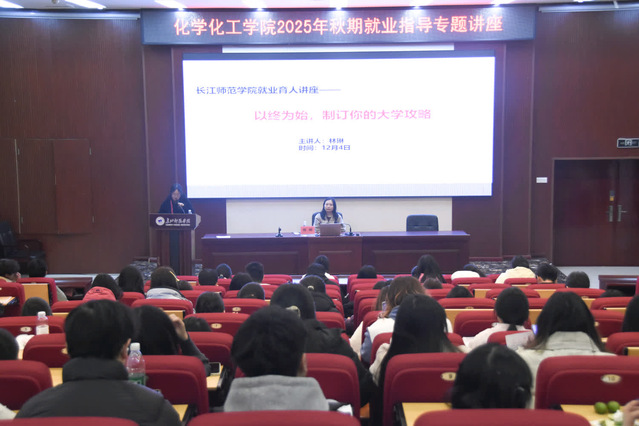 为引导学子探索技能提升路径,精准匹配目标岗位需求,12月4日19时,化学化工学院于摇光学术报告厅开展以“铸就你的未来简历——大学四年逆袭规划指南”为主题的讲座。此次讲座由材料学院党委副书记林琳主讲,化学化工学院2024级、2025级部分学生参与。