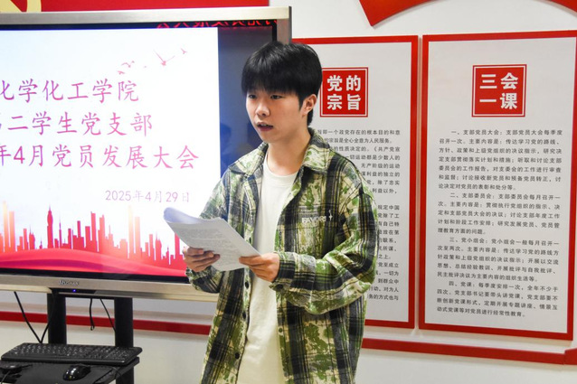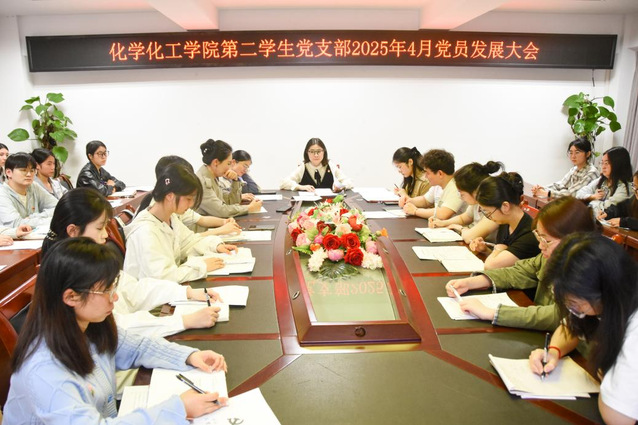 为切实做好党员发展工作,为我院党员队伍增添活力,为党的事业发展提供坚实保障,化学化工学院第二学生党支部于2025年4月29日19时在至安楼(北)607开展2025年4月党员发展大会。会议由化学化工学院第二学生党支部书记覃小艳同志主持,第二学生党支部全体党员参会。本次会议严格按照《中国共产党发展党员工作细则》等文件要求和程序进行,讨论接收江燚、李秋苹、潘文静、刘利敏四位同志为中共预备党员事宜。