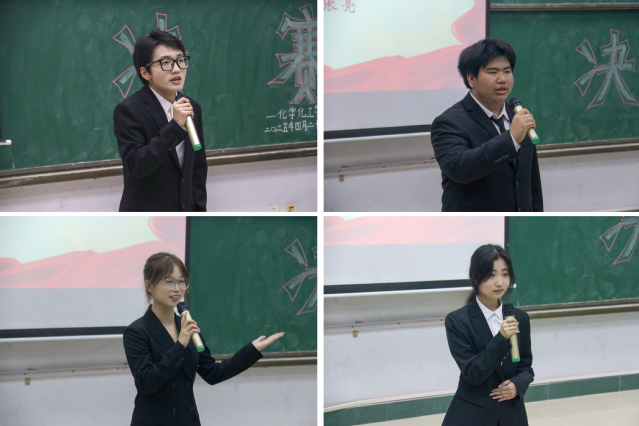 为深化同学们对民族精神的认知,激发青年学子的爱国热情与社会担当,4月22日19时,化学化工学院于正心楼01阶梯教室开展以“赓续民族魂,共筑青春梦”为主题的五四演讲比赛决赛,本次比赛特邀化学化工学院2021级辅导员黎兰、教师袁斌芳担任评委。化学化工学院2023级和2024级部分学生参与。