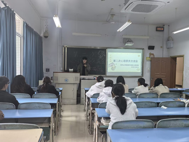 为进一步强化班级心理委员的责任意识与专业素养,搭建朋辈心理互助交流平台,10月24日12时50分,化学化工学院于正心楼101教室开展第二次心理委员交流会。化学化工学院心理发展部、2024级和2025级各班心理委员参与此次会议。