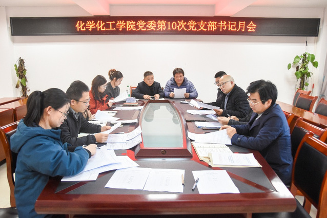 为深入学习贯彻党的二十届四中全会精神,2025年11月25日下午13:00,化学化工学院党委在至安北楼607会议室召开化学化工学院2025年第10次书记月会,会议由化学化工学院党委书记石文兵主持。