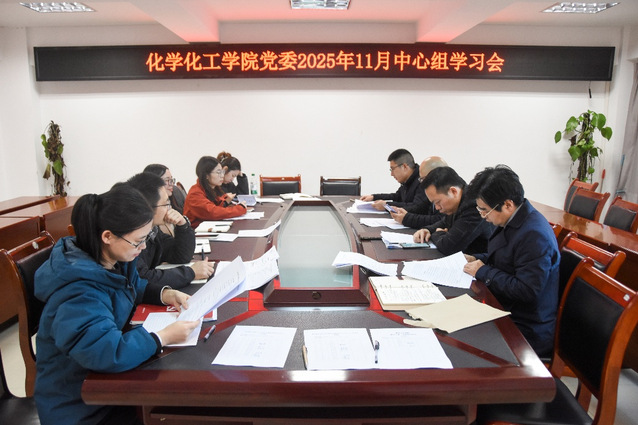为深入学习贯彻党的二十届四中全会精神,2025年11月25日下午14:00,化学化工学院党委在至安北楼607会议室召开2025年11月中心组学习会。会议由化学化工学院党委书记石文兵主持。