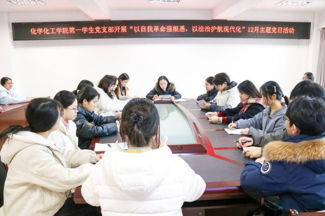 为深入学习贯彻习近平总书记重要讲话精神,引导党员强化党性与法治素养20251225日中午1210分,化学化工学院第一学生党支部于至安楼(北)607会议室开展“以自我革命强根基,以法治护航现代化”主题党日活动。此次会议由第一学生党支部书记黎兰同志主持,支部全体党员参会。