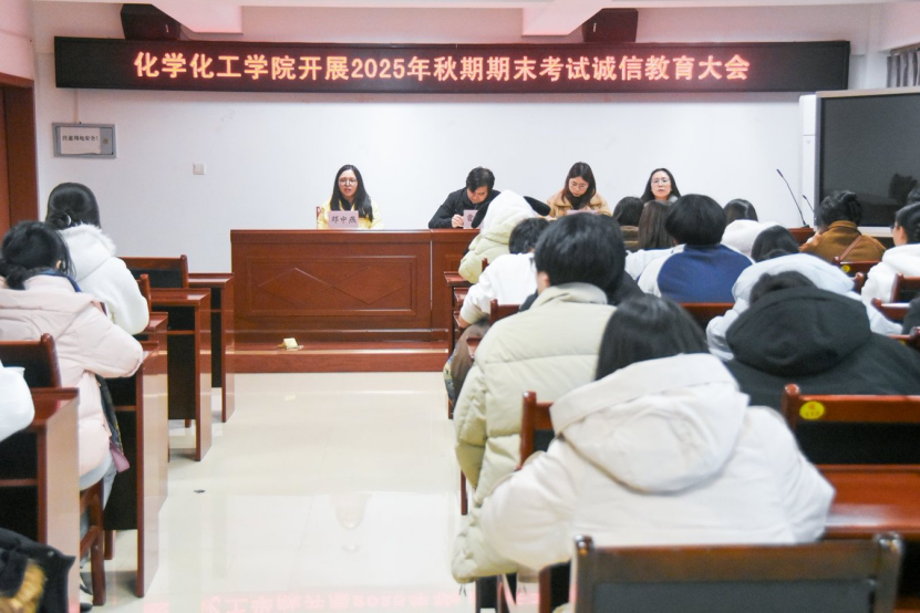 为筑牢校园诚信根基,营造公平公正的考试环境,12月31日12时50分,化学化工学院于至安楼(北)602会议室开展了2025年秋期期末考试诚信教育大会。化学化工学院党委副书记曹团武、学工办副主任兼团委副书记覃小艳、2022级政治辅导员邓中燕、2025级政治辅导员黎兰以及2022级至2025级各班班长、团支书参加此次会议。