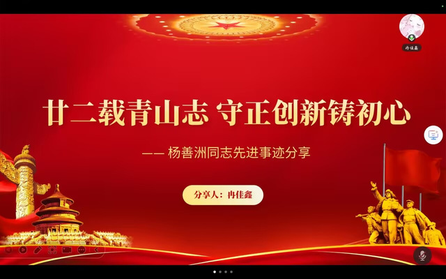 活动伊始,支部党员冉佳鑫同志分享了“草鞋书记”杨善洲的党史故事。曾任云南省保山地委书记的杨善洲,为官清廉、一心为民。1988年退休后,他拒绝省城安享晚年的安排,回到大亮山义务植树22年。期间,他住窝棚、捡果核育苗,创新造林技法与生态修复模式,将荒山变为万亩林海,最终无偿捐赠国家,用一生践行“服务人民不停止”的党员誓言。