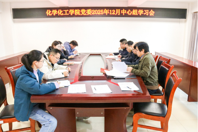 为深入学习贯彻相关重要精神,2025年12月25日上午10:30,化学化工学院党委在至安楼北楼607会议室召开2025年12月中心组学习会。会议由化学化工学院党委书记石文兵主持。
