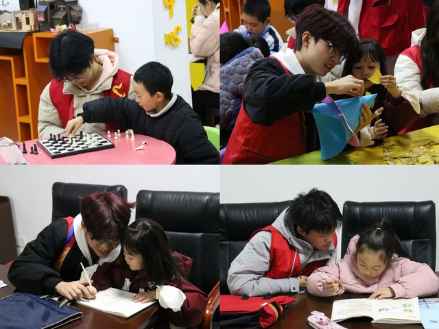 活动伊始,志愿者为孩子们提供一对一的作业辅导,帮助纠正错误,解决作业难题。作业辅导结束后,手工创作环节正式启动。志愿者与孩子们一对一结对指导,鼓励大家充分发挥想象力,利用银杏叶及各类辅助材料完成创意作品,拼贴成多样造型,或制作精美叶脉书签。创作过程中,志愿者现场示范、细致解答,课堂秩序井然,互动氛围活跃。