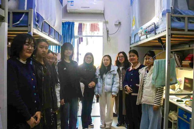 在走访寝室过程中,老师们仔细检查了宿舍的卫生状况和用电安全情况,重点排查了违规使用大功率电器、私拉乱接电线、杂物堆积等安全隐患。对于发现的问题,老师们当场提出整改要求,并指导学生进行纠正。黎兰老师还耐心叮嘱同学们要严格遵守宿舍管理规章制度,增强安全防范意识,注意防火、防盗、防诈骗,保持室内通风整洁,合理安排作息时间,养成良好生活习惯。同学们认真倾听,并纷纷表示将积极配合整改,共同维护寝室的安全与文明。