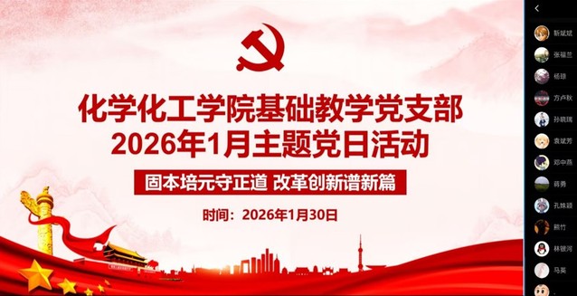 为深入学习贯彻党的重要精神,提升党员思想政治素养,加强支部建设。2026年1月30日19:30,基础教学党支部通过线上会议开展了以“固本培元守正道 改革创新谱新篇”为主题的党日活动。此次活动由支部书记袁斌芳同志主持,支部部分党员共同参与。