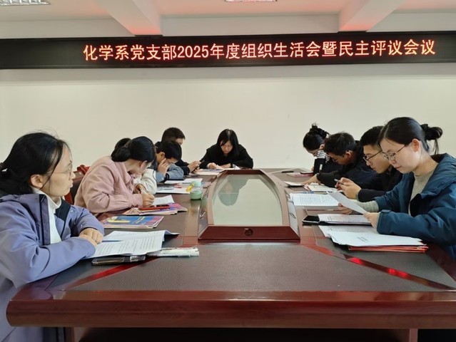 为深入学习贯彻习近平新时代中国特色社会主义思想,巩固深化党纪学习教育成果,2026年3月31日下午14点30分,化学化工学院化学系党支部在至安楼(北)607会议室召开了2025年度组织生活会暨民主评议党员会议。本次活动由化学系党支部书记董文飞主持,化学化工学院副院长、党委委员谭晓平出席此次会议,部分化学系教师党支部党员参加会议。