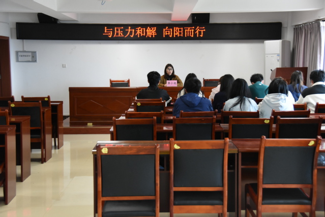 为关注大三学生心理健康,疏导他们的心理压力,提升学生干部心理关怀能力,4月1日下午,长江师范学院化学化工学院于至安楼(北)607会议室开展“与压力和解,向阳而行”心理压力调试主题教育活动,由2023级辅导员覃小艳主讲,部分学生干部参与。