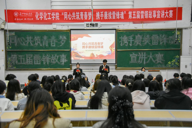 为深入学习雷锋精神,赓续红色血脉,凝聚青春力量,3月29日19时,化学化工学院于诚意楼01阶梯教室开展以“同心共筑青春梦,携手赓续雷锋魂”为主题的第五届雷锋故事宣讲比赛决赛。本次比赛由2022级政治辅导员邓中燕、2025级政治辅导员黎兰及学院团委学生组织主席团部分成员担任评委,2023级、2024级及2025级部分同学到场观赛。