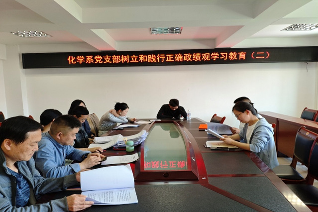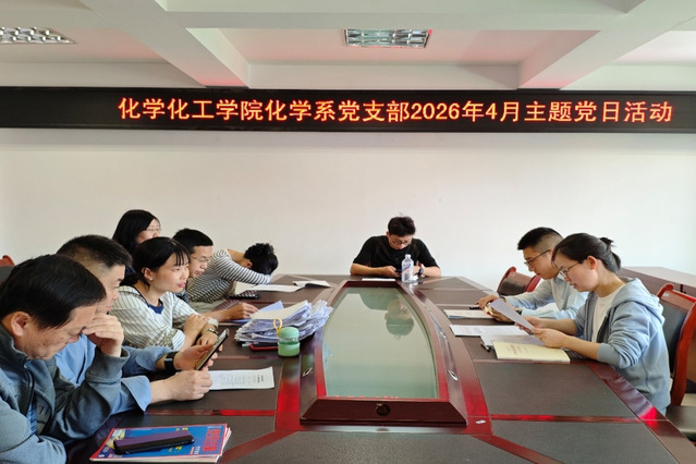 2026年4月24日下午13点,化学化工学院化学系党支部于至安北楼607开展了“树立和践行正确政绩观”主题党日活动,本次活动由支部书记董文飞主持。部分化学系教师党支部党员参加会议。